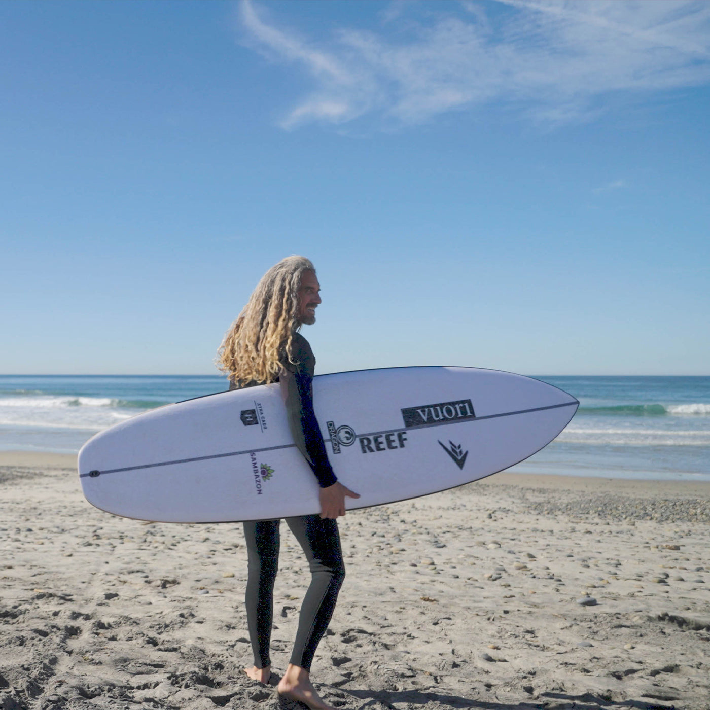 Rob started with his best-selling Machadocado, and stretched out the outline to its midlength form, which made it much straighter creating a really glidey and floaty shape that’s easy to ride. He pulled down the rail from the domed deck giving the shape plenty of performance, and double concave with see running down the middle, making the board really user-friendly and easy to ride. The wide squash is super thinly foiled, just like Rob’s Machadocado. This design is really responsive rail-to-rail, great for long drawn-out turns, but also whips really tight in the pocket and in tight places on the wave face.