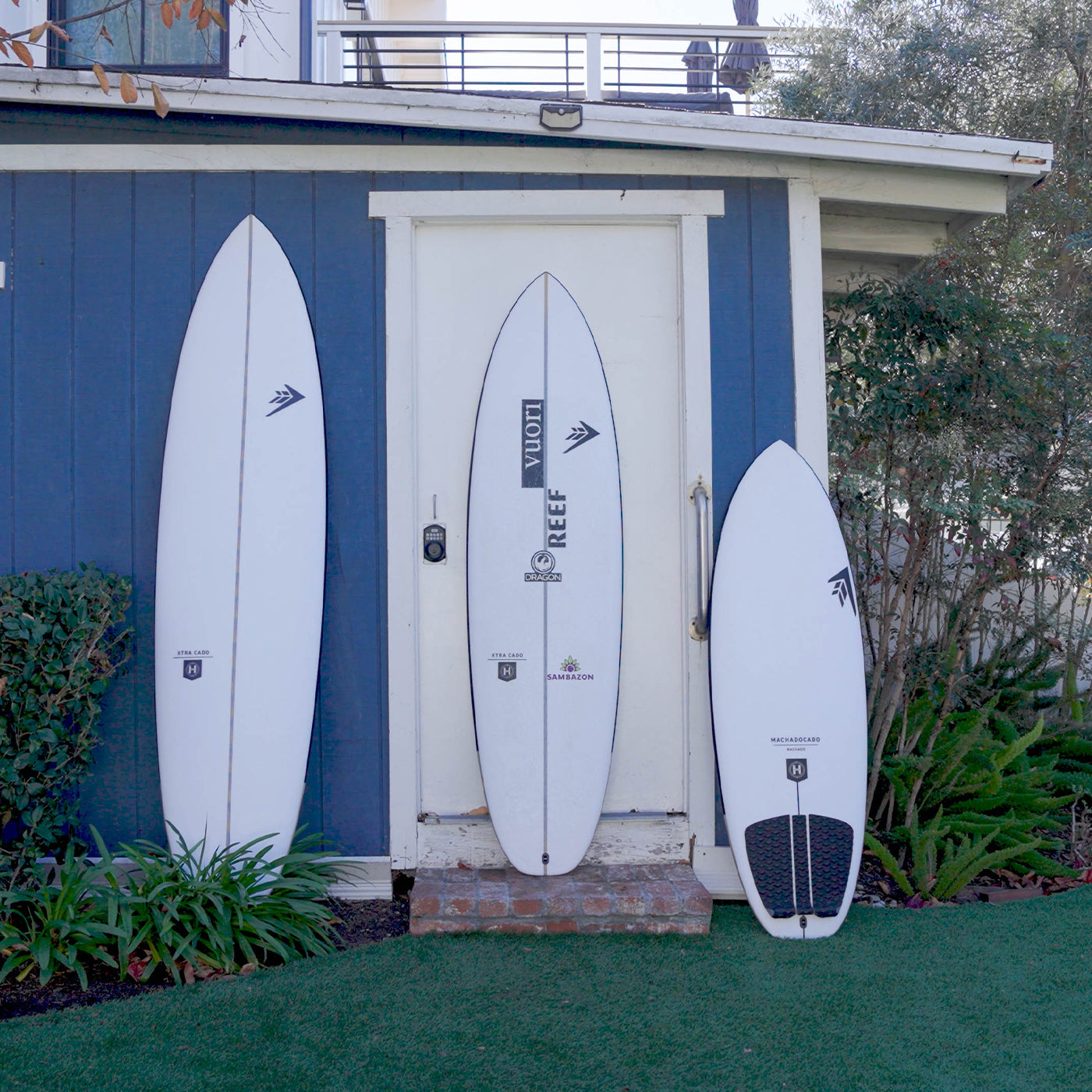The Xtra Cado is built with 5 fin boxes for unlimited fin configuration options. You can ride it as a Quad in some bigger surf, as a Twin in some small surf, or as a Thruster when you wanna rip. Or ride it with no fins at all...who cares? As long as you are having fun." Rob's been riding his stock 6'8" Xtra Cado with his Machado Seaside Quad Fin Set, and other team riders have been enjoying this shape with his Machado 2 + 1 Fin Set.